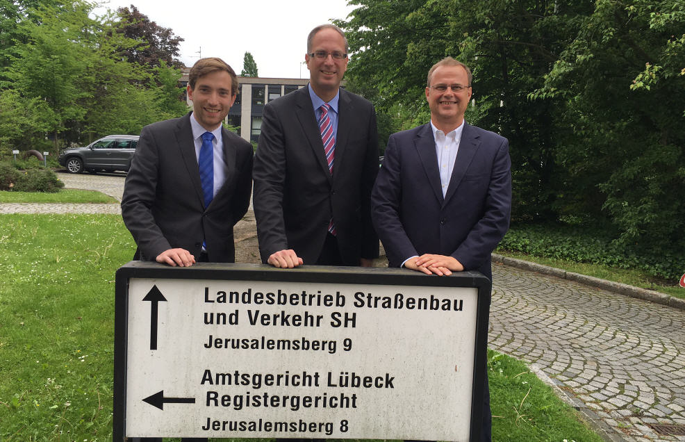Der Ahrensburger CDU-Landtagsabgeordnete, Tobias Koch, und die CDU-Kandidaten für die Wahlkreis Stormarn-Nord, Christian Claussen aus Bargteheide, sowie Stormarn-Süd, Lukas Kilian aus Glinde, haben sich am vergangenen Freitag bei der Niederlassung Lübeck des Landesbetriebs Straßenbau und Verkehr über die Bauvorhaben im Kreis Stormarn informiert.